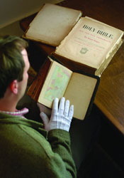 Griffith examines Faulkner family Bibles recently returned to Rowan Oak.